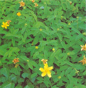 Hypericum calycinum, der anvendes som bunddækkeplante.