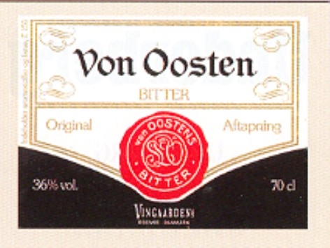 36%, Danmarks ældste bitter - lanceret herhjemme i 1899 - er af tysk oprindelse, men recepten blev overgivet til dansk produktion i 1935. Den var sammen med Kösters Bitter førende på markedet, indtil Gl. Dansk kom til i 60' erne. Den kraftfulde og let søde bitter oser af julehygge, komponeret som den er på bl.a. kanel, nellike, appelsin og enebær. Von Oosten har i dag en lille, men yderst trofast skare af ældre tilhængere, hvoraf nogle endda har forenet sig i en "Klemme Klub" for at anprise drik­ken. Og har man først dannet en forening omkring en bitter, kan det ikke blive mere dansk.