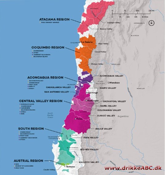 Aconcagua, appellation, rødvinen er mest interessant - fyldig, mørk og moden uden at blive tung og kan drikkes umiddelbart efter frigivelse