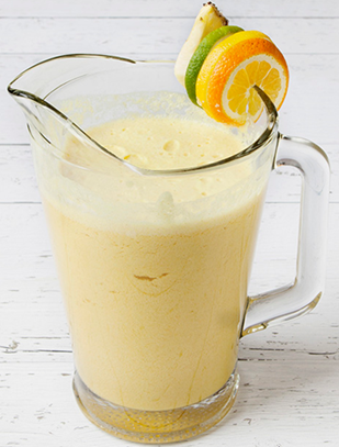 l en blender pureres ananas og Malibu indtil blandingen er glat.