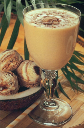 Afkølet kakao, kokossaft og æggeblommer piskes