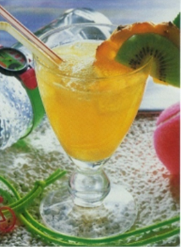 Hældes gennem barsi i et mellemstort cocktailglas med is.