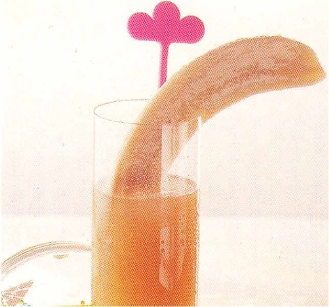 Hvert glas pyntes med en halv banan.