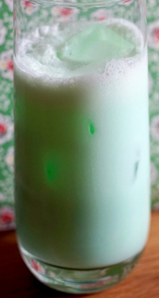 Blendes til blød sorbet og skænkes i højt glas med 2 isterninger.