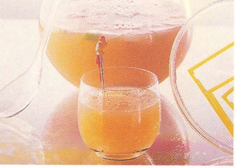 Frugten, vodkaen og safterne hældes i en bowleskål og stilles koldt.