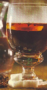 Hæld rom og curayaoi et grogglas og tilføj sukker og nellike.