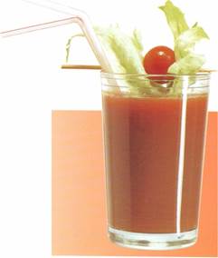 tomaterne, gulerødderne og salaten og skænk juicen i et højt glas.