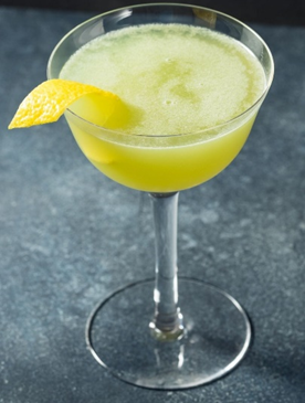 Rystes godt med is i mixerglas og sies i cocktailglas.