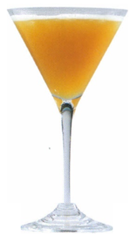 Hældes gennem barsi i et cocktailglas.