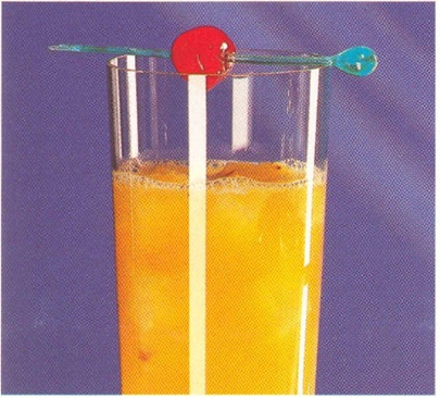 Drinken fyldes op med ginger ale, og en cocktailpind stikkes gennem kirsebærret