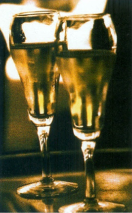 Isafkølet vodka hældes i et champagneglas.