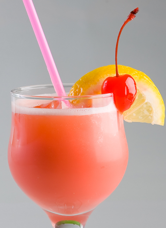 Pynt med kirsebær og citronskive. Tilsæt sugerør.