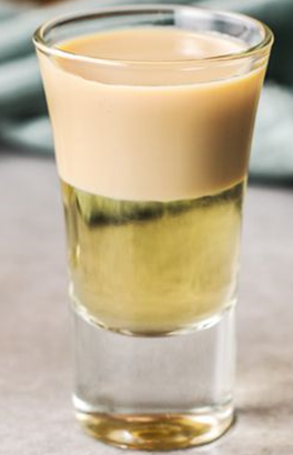Læg derefter Creme de Banana først, derefter Bailey's og rom flydende på toppen.