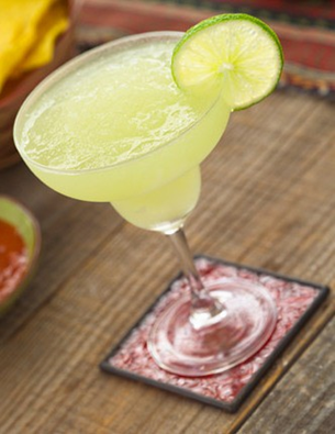 Blend ved høj hastighed. Hæld i et margarita glas.