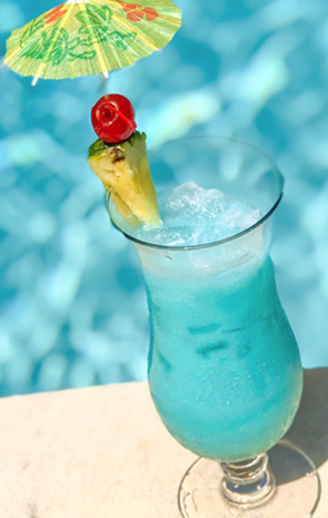 Flot tyrkis/cyan farve, kokos giver cremet substans, sommer/party drink, fed.