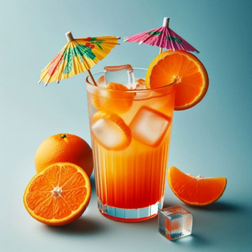 Pynt med frisk appelsinskive, cocktailbær og parasol.