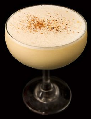 Ryst godt. Si over i et cocktailglas og pynt med muskatnød.