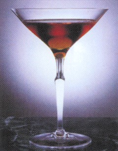 Hældes gennem barsi i et cocktailglas.
