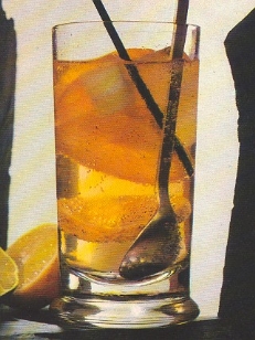 Læg citronskiverne i et højt glas og pres dem let med en barske.