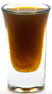 Hæld Tabasco i bunden af ​​shotglas og fyld med tequila.