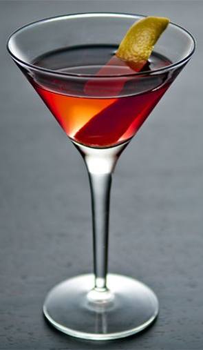 Bland alle ingredienser med is, si i et cocktailglas, og server.