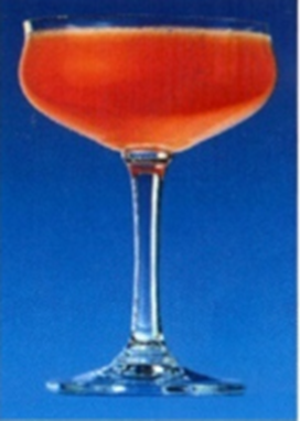 Hældes gennem barsi i et cocktailglas.