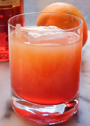 Hæld Campari op i et whiskyglas med is og tilsæt appelsinjuice,