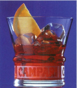 Campari og vodka rystes kraftigt sammen med is i en shaker.