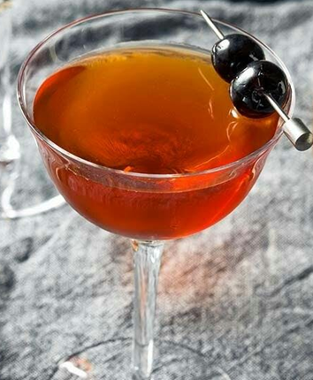 Ryst i et halvt minut, og hæld/si over i et cocktailglas.