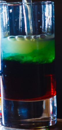 Bland Cuba Caramel og Rosé Lime, skænk i et shotglas, så det ligger i bunden.