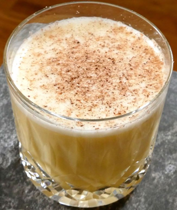 Ryst alle ingredienser (undtagen muskatnød) med is og sigt over i et whiskyglas.