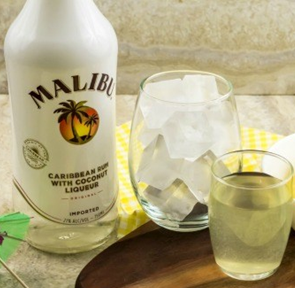 Kom is i et glas, tilsæt Malibu og fyld glasset med 7up.
