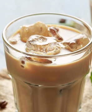 Bland krydret rom, kahlua og fløde i en shaker fyldt med is.