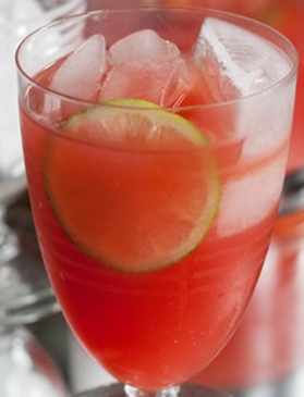 Fyld op med danskvand og pynt med en limeskive.