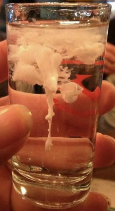 Lad nu flere dråber af Bailey's falde ned i spiritussen.