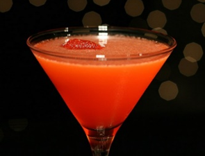 Ryst godt og hæld i et cocktailglas, pyntet med jordbær.
