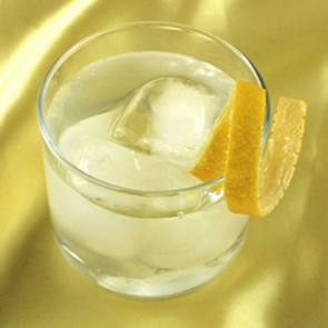 Tilsæt sodavand efter smag. Pynt med citronskal.