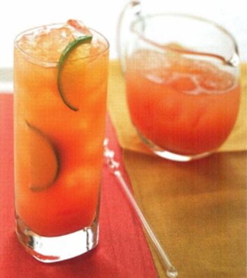 Serveres i et longdrinkglas med meget is og limeskiver.