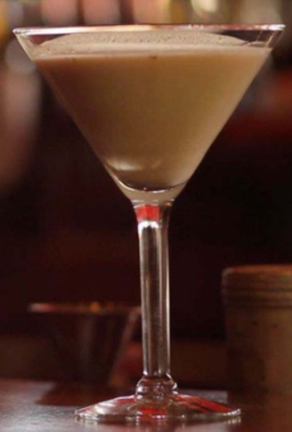 Rystes med knust is. Si drinken over i et cocktailglas.