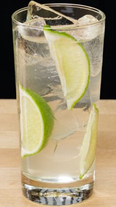 Vodka og snaps blandes med lime juice, isterninger i longdrinkglas,