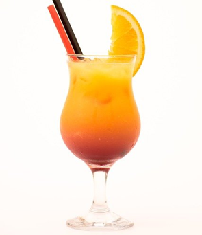 tilsæt derefter 2 dele appelsinjuice og 1 del tranebærjuice.