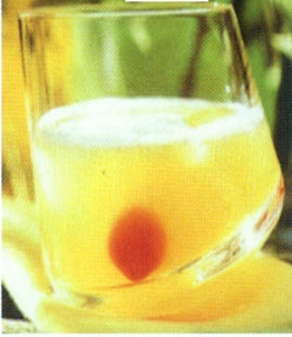 Hældes gennem barsi i et tumblerglas.