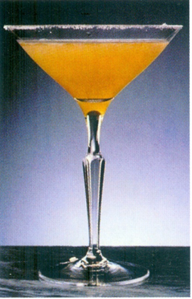 Hældes gennem barsi i et cocktailglas.