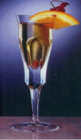 Hældes gennem barsi i et champagneglas.