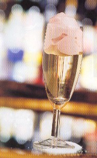 Champagneglas fyldes 3/4 op med Cava og "toppes" op med sifonen.