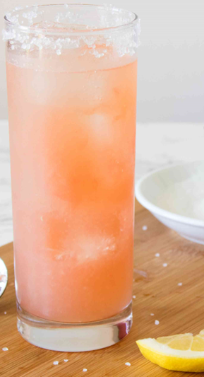 Tequila og grapefrugt juicen mixes med is og skænkes i glasset.