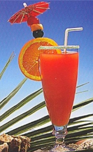 Mix ingredienser med is, si i glasset og top med orangejuice.