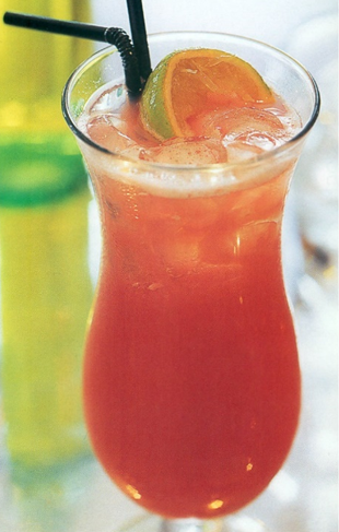 Hæld vodka, tranebærsaft og grapejuice i et højt glas