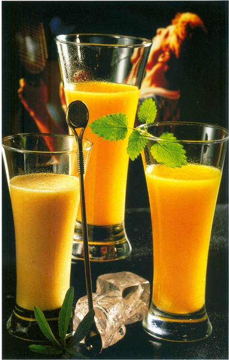Bananen pureres. Blandes med tropisk frugtdrik og
