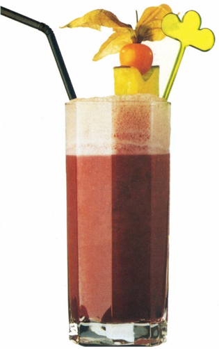 Hældes gennem barsi i et longdrinkglas med isterninger.